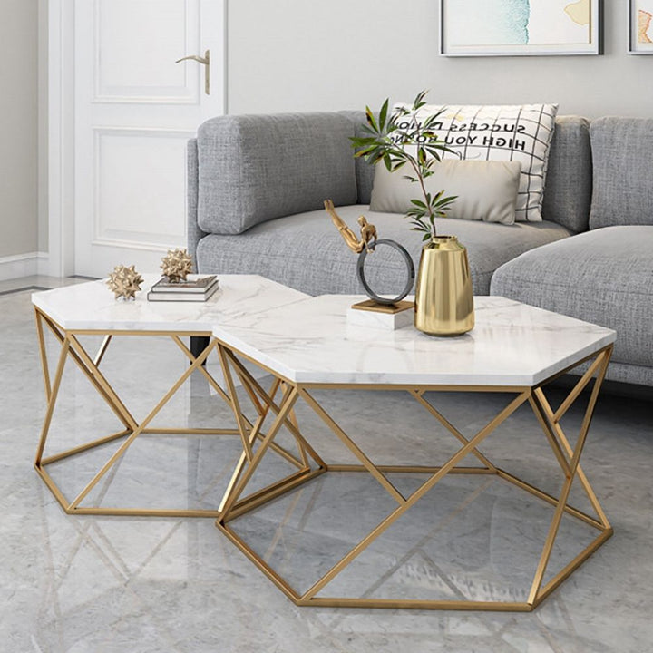 أضف لمسة من الفخامة المعاصرة إلى غرفة معيشتك مع طقم الطاولات السداسية بتصميمه المميز وألوانه الراقية. يجمع بين القاعدة المعدنية المطلية بدهان إلكتروستاتيك المقاوم للصدأ وسطح رخامي فاخر، ليمنحك قطعة ديكور عملية وجذابة تُثري أي مساحة.